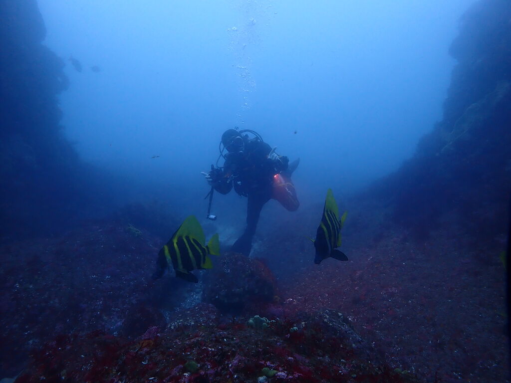 潮流が止まると、一気に視界ダウン(汗) 白っぽい水中。