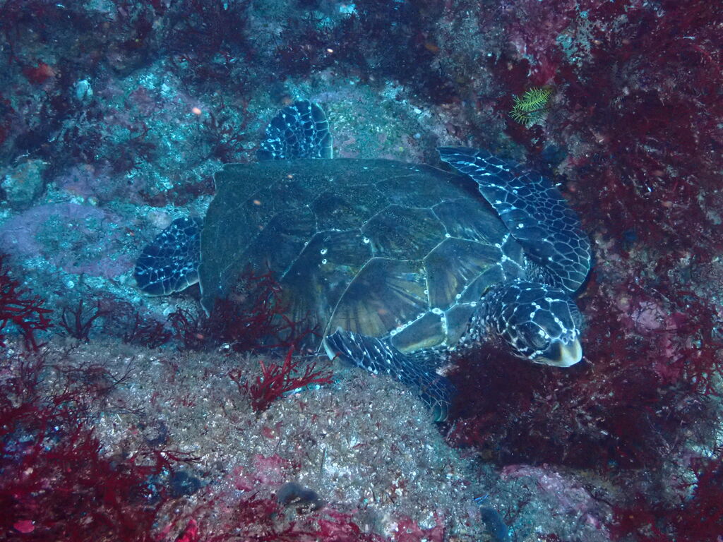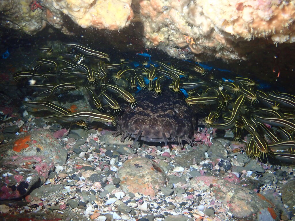 チェーンをつないで、ブイを水中に設置。途中生物探し。 カエルアンコウは定位置。