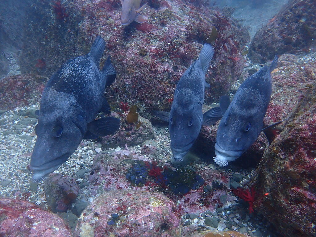 根の上にはメジナの群れ。離れ根の南側にはアオウミガメ☆