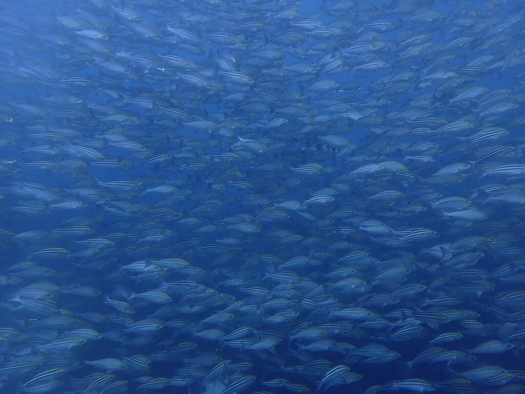 沖のイサキの群れは相変わらず! 流れが無かったので中層でしっかり玉になっていました。