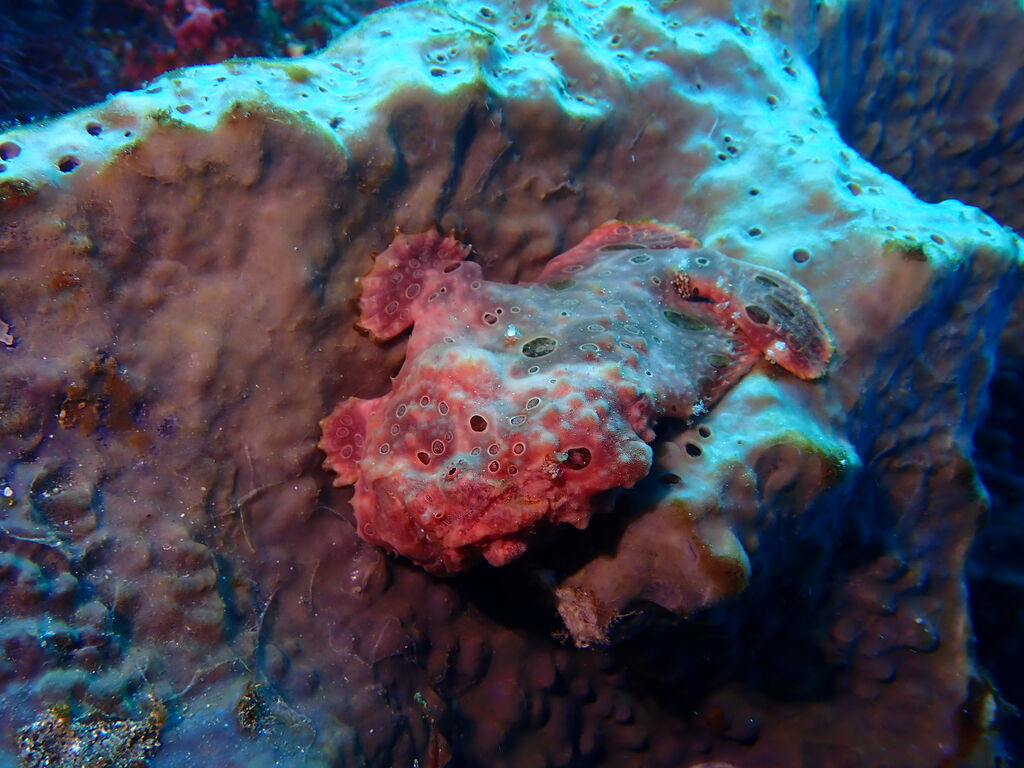ブイ下に戻ってみると、以前から行方をくらましていた小ぶりなオオモンカエルが居ました。