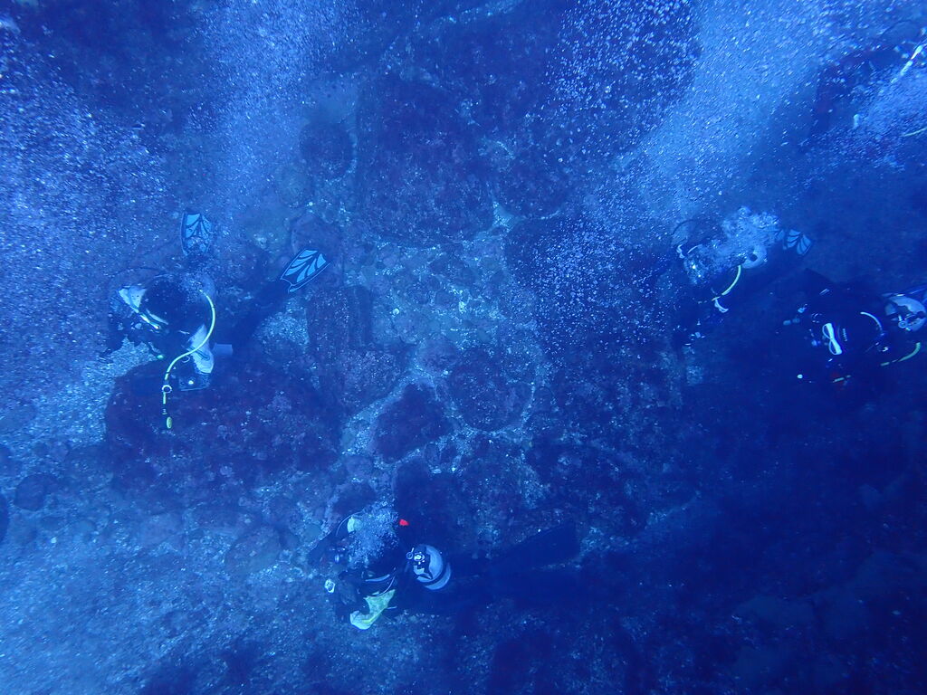 真っ青な潮のおかげで、サメ穴からうっすらですがアナゴ岩が見えました☆