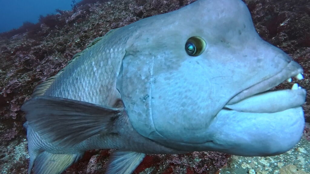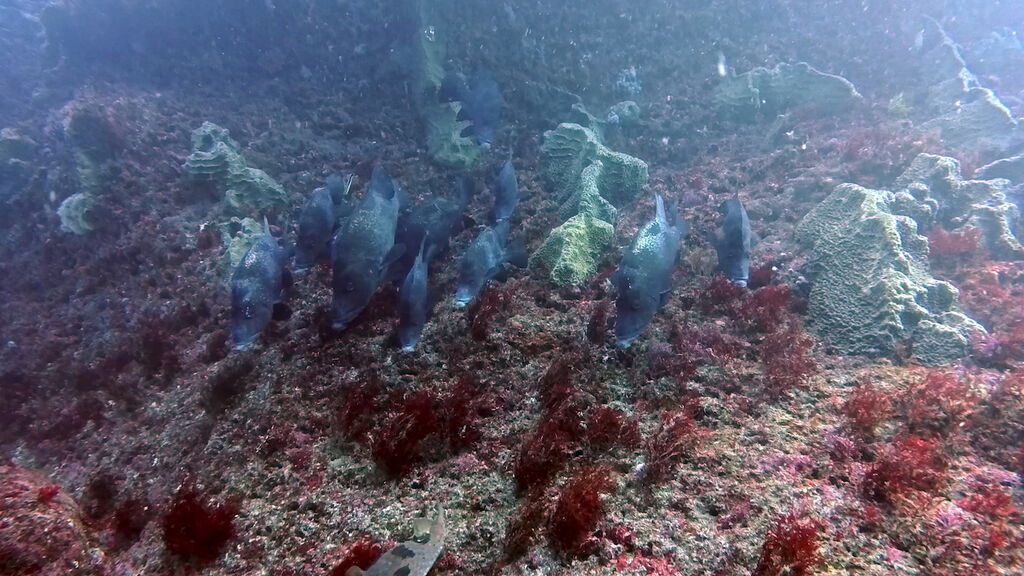 流れが弱いので中層にヒゲダイとイシダイが群れていました。
