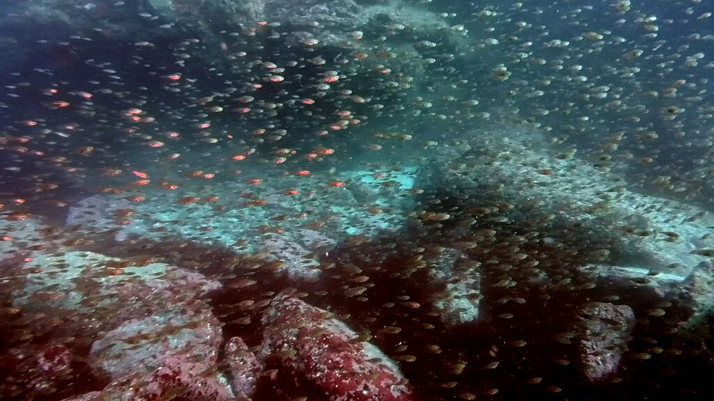 メバル谷にはネンブツダイの群れ、キンメモドキの群れ。